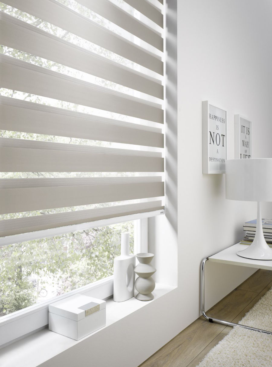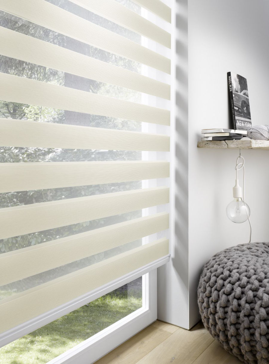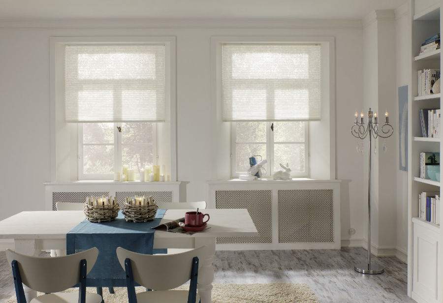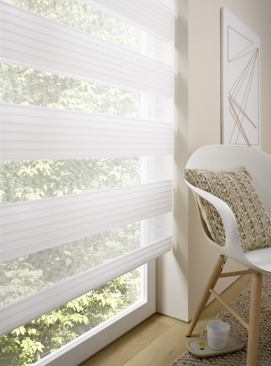 NB : option possible avec des stores plissés Duo doubles, transparent le jour et occultant la nuit